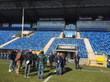 AK UfO lädt zum Blick hinter die Kulissen bei Mannheims legendärem Fussballclub: dem SV Waldhof Mannheim.16 Wirtschaftsjunioren machten sich am Samstag, den 24. Februar, auf den Weg ins Carl Benz-Stadion, der Heimat des SV Waldhof Mannheim. Bei strahlendem Sonnenschein und Temperaturen nur knapp über dem Gefrierpunkt startete der Besuch mit einer einstündigen Stadionführung. Dabei erfuhren wir viel über Historie und Gegenwart des Viertligisten, erhaschten aber auch Einblicke in den Kabinentrakt und nahmen auf dem Pressepodium Platz.