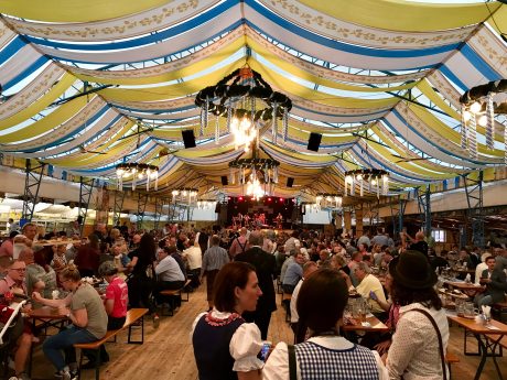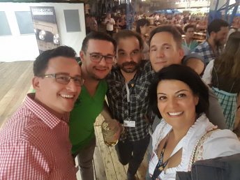 Die paar Stunden Schlaf haben wirklich gut getan. Mit neuer Energie und bayrischer Tracht nehmen wir die Straßenbahn zum Plärrer. Eigens für die Wirtschaftsjunioren wird dort ein komplettes Festzelt bewirtet. Es gibt Hausmacherplatten, halbe Händel mit Kartoffelsalat und natürlich die ein oder andere Maß Bier. Nachdem jeder gestärkt ist dauert es auch nicht mehr lange bis die ersten auf den Tischen und Bänken tanzen, singen und feiern. Bis 22:00 Uhr heizt uns die Band richtig ein, dann müssen wir das Festzelt auch leider schon wieder verlassen. Schade, denn wir hätten alle durchaus noch ein Weilchen weiter feiern können. Aber wir sind ja auf einer BUKO und jeder Kenner weiß, um 22:0 Uhr ist da noch lange nicht Schluss. Also entern wir den Bus zur nächsten Location und unter lauten Stadion Schlachtgesängen „wir singen HUMBA HUMBA HUMBA tätärä“ bahnt sich der wippende Bus seinen Weg durch die Augsburger Nacht zum Bungalow. Mit vielen alten und neuen WJ-Freunden lassen wir dort die Nacht gebührend ausklingen.